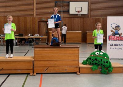 Nach einer kurzen Pause startete der E3 Speed Wettkampf für 10 Springerinnen aus Bieber; hier konnten sich einige über persönliche Bestleistungen freuen.