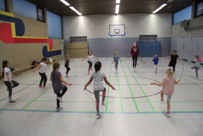 Unser Training beginnen wir jede Woche mit einem Aufwärmspiel und anschließendem Dehnen. Danach üben wir verschiedene Disziplinen wie Speed, Compulsory, Zwei im Seil oder Double Dutch. Wenn ein Wettkampf oder der Turnnachmittag ansteht trainieren wir auch hierfür ganz fleißig. Beendet wird die Stunde meistens mit einem kleinen Spiel.